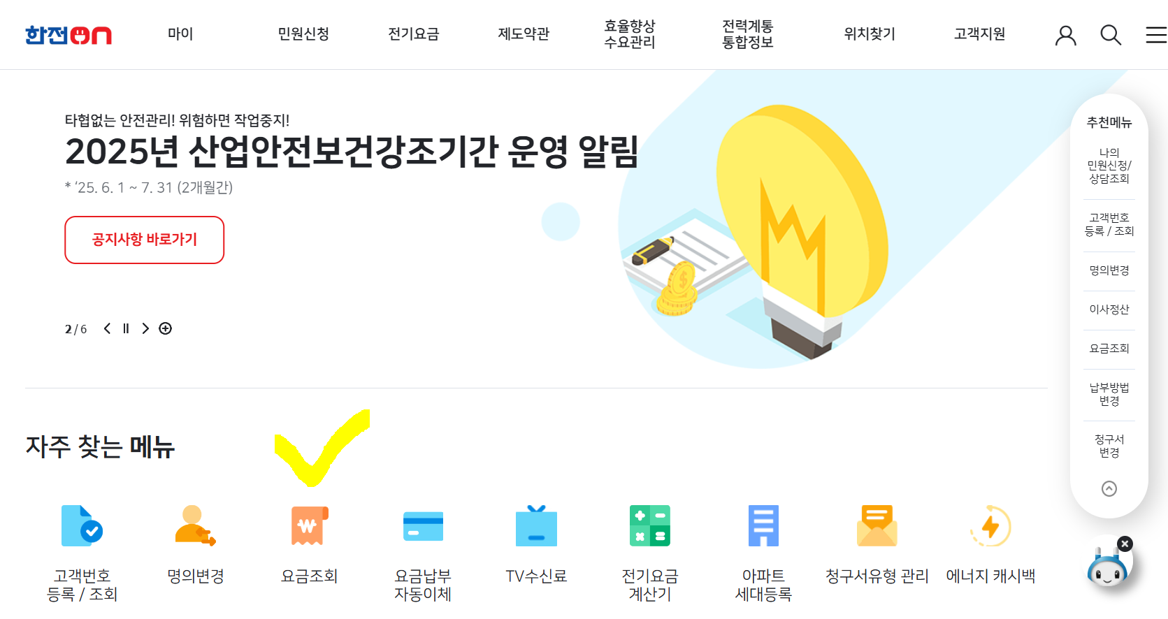 1. 온라인으로 전기요금 확인하기 (한전ON)